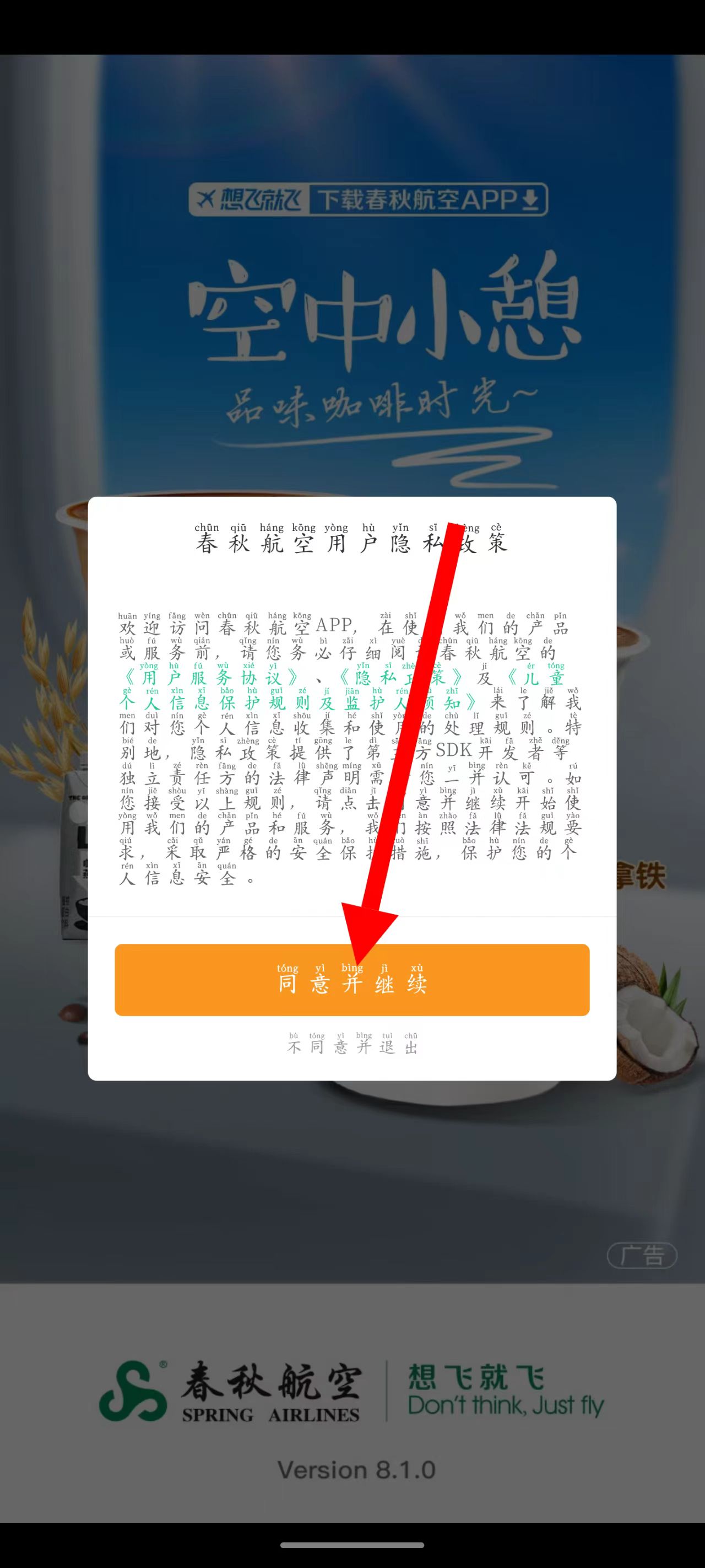 1、打開APP,在隱私政策頁面點(diǎn)擊同意并繼續(xù)。