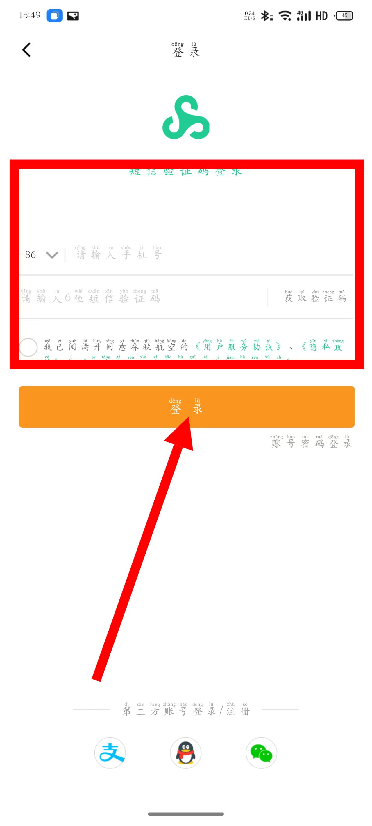 4、在登錄頁面,輸入手機(jī)號、驗(yàn)證碼,點(diǎn)擊登錄,完成操作。