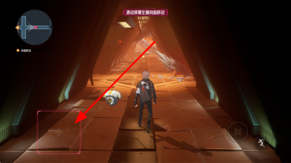 1、首先滑動屏幕左側(cè),操控角色向前移動,在場景中探索,朝著目標方向行進,為后續(xù)遭遇怪物與戰(zhàn)斗做準備。