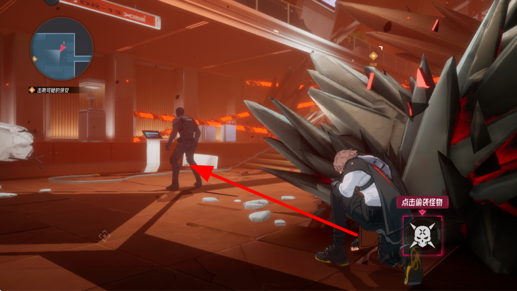 2、當發(fā)現(xiàn)怪物時,尋找合適的時機,點擊偷襲怪物的操作按鈕,向怪物發(fā)起偷襲,出其不意地對怪物造成傷害。