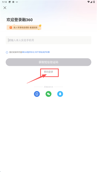 3、在登錄界面,點(diǎn)擊密碼登錄選項(xiàng),切換至密碼登錄模式。