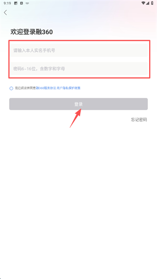 4、輸入本人實(shí)名手機(jī)號(hào)和密碼,勾選協(xié)議后點(diǎn)擊登錄按鈕,完成賬號(hào)登錄。