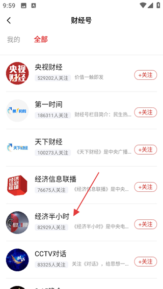 3、在更多財經(jīng)號列表中,點擊經(jīng)濟半小時,進入其詳情頁。