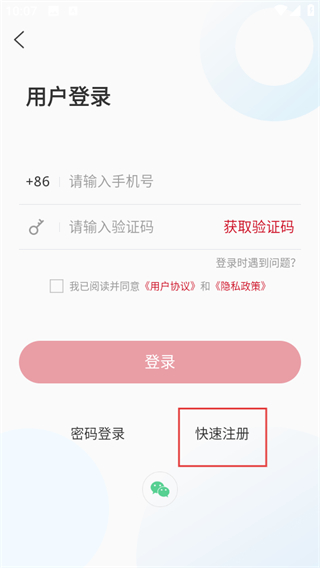 3、在用戶登錄頁面,點擊快速注冊,進(jìn)入用戶注冊頁面。
