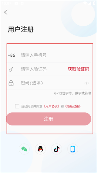 4、在用戶注冊頁面,輸入信息勾選協(xié)議后點擊注冊,完成注冊。