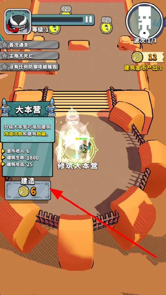 1、進行大本營的修筑,消耗相應金幣完成修筑,升級大本營還能增加建筑改造次數(shù)和建筑數(shù)量,為防御布局提供基礎。