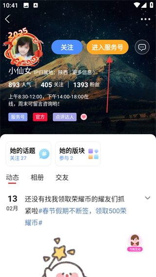 3、在客服頁面,點擊進(jìn)入服務(wù)號,進(jìn)入服務(wù)號相關(guān)頁面。