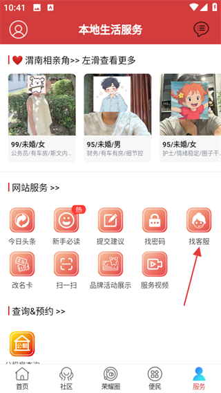 2、在本地生活服務(wù)頁面,點擊找客服,進(jìn)入客服相關(guān)頁面。