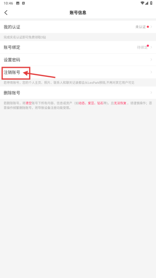 4、在賬號(hào)信息頁(yè)面,點(diǎn)擊注銷(xiāo)賬號(hào)選項(xiàng),進(jìn)行賬號(hào)注銷(xiāo)操作。