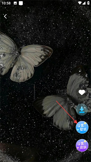 3、在喜歡的蝴蝶壁紙詳情頁,點擊設置壁紙。