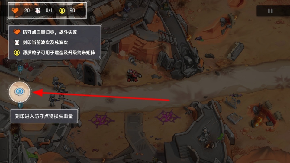 3、了解刻印機(jī)制,刻印進(jìn)入防守點(diǎn)會(huì)損失血量,同時(shí)源質(zhì)粒子可用于建造及升級(jí)納米矩陣等,運(yùn)用機(jī)制助力戰(zhàn)斗。