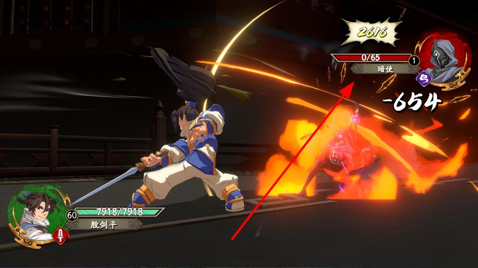 3、戰(zhàn)斗過(guò)程中,釋放技能,像殷劍平釋放強(qiáng)力招式,對(duì)敵人造成血條大量傷害,有效打擊敵方勢(shì)力,助力戰(zhàn)斗優(yōu)勢(shì)。