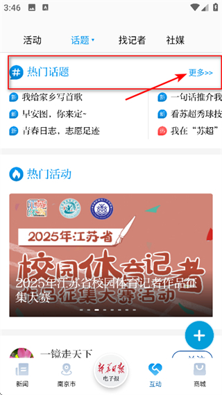 2、在APP主頁(yè)面,點(diǎn)擊熱門(mén)話題右側(cè)的更多,進(jìn)入話題列表頁(yè)面。
