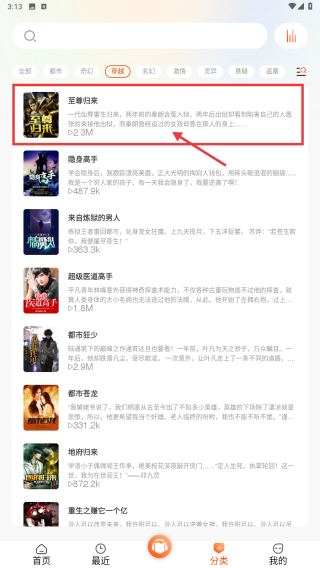 3、在玄幻內(nèi)容列表中,找到至尊歸來?xiàng)l目,點(diǎn)擊進(jìn)入詳情頁(yè)。