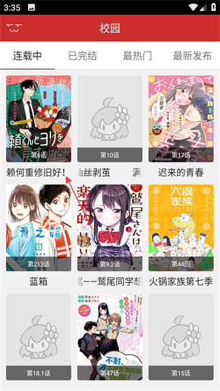 3、在校園題材頁面,選擇賴何重修舊好漫畫。