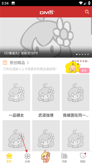1、在動漫屋首頁點(diǎn)擊頁面底部的分類,進(jìn)入分類頁面。