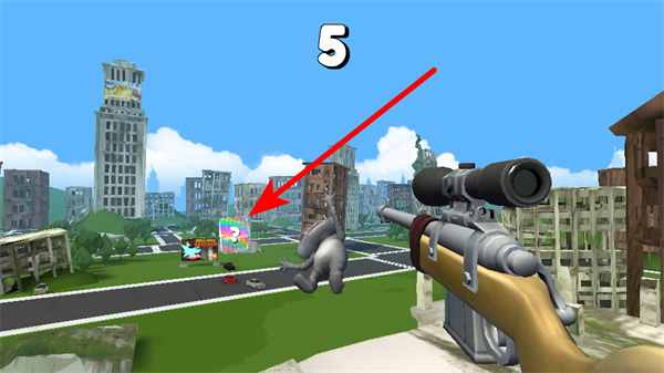 3、在狙擊關(guān)卡中,使用狙擊槍瞄準(zhǔn)遠(yuǎn)處彩色目標(biāo)物,擊中后獲取分?jǐn)?shù),留意目標(biāo)位置并調(diào)整射擊角度提升命中率。