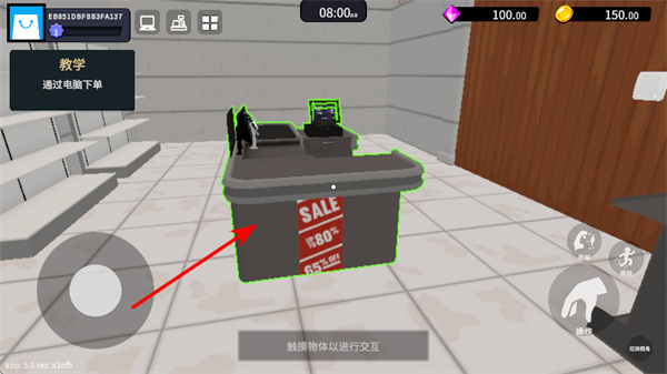 2、在店鋪內(nèi),靠近帶有SALE標(biāo)識的收銀臺,觸摸物體進行交互,可開展下單等相關(guān)操作,推進流程。
