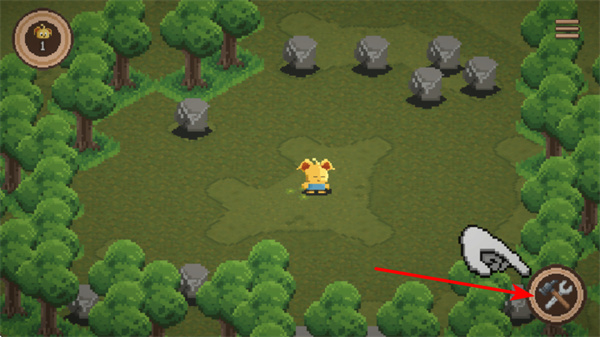 2、點(diǎn)擊右下角工具圖標(biāo),可使用工具進(jìn)行如挖掘石頭等操作,獲取建筑或升級(jí)所需的材料。