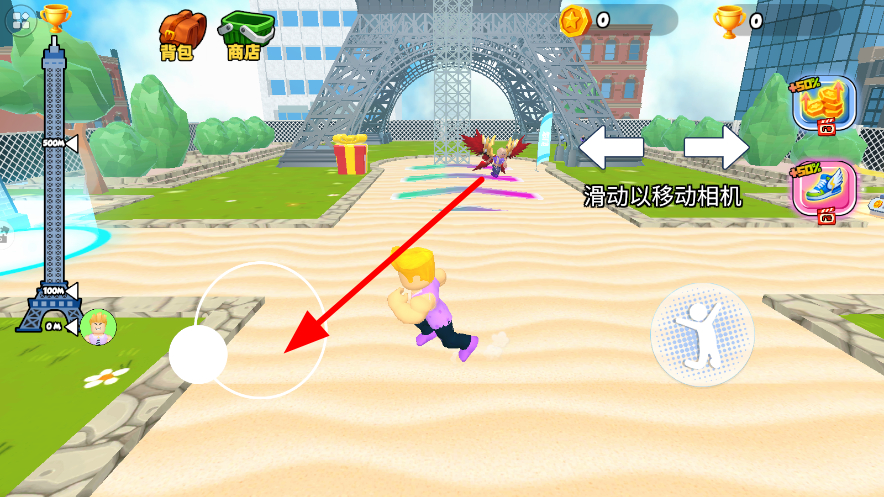 1、通過(guò)左側(cè)的移動(dòng)操控區(qū)域,控制角色在場(chǎng)景內(nèi)移動(dòng),朝著目標(biāo)方向前進(jìn),探索不同的區(qū)域,開(kāi)啟游戲體驗(yàn)的第一步。