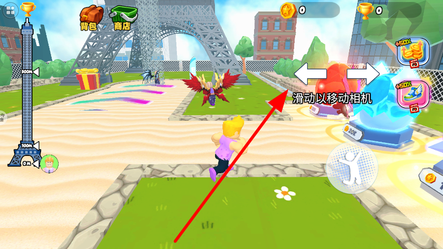 2、若想調(diào)整觀察視角,按照提示滑動(dòng)屏幕,移動(dòng)相機(jī)視角,從不同角度觀察場(chǎng)景,更好地了解周?chē)h(huán)境,輔助移動(dòng)等操作。