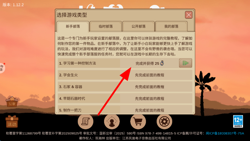 1、選擇游戲類(lèi)型,有新手部落、臨時(shí)部落等多種類(lèi)型可選,新手部落適合新手,了解制作物品的方法,助力快速上手。