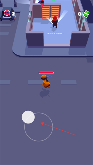 1、進(jìn)入游戲,通過屏幕左下角的虛擬搖桿操控橙色角色移動,接近目標(biāo)區(qū)域。