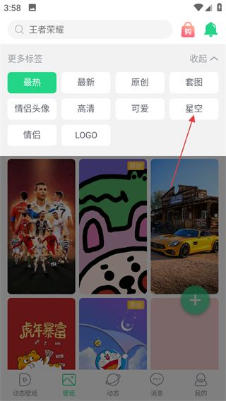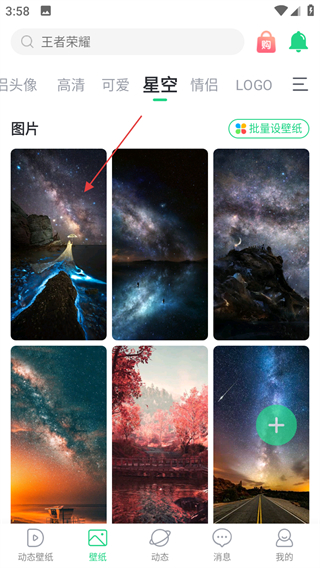 2、在更多標(biāo)簽中,點擊星空標(biāo)簽,進(jìn)入星空類圖片頁面。