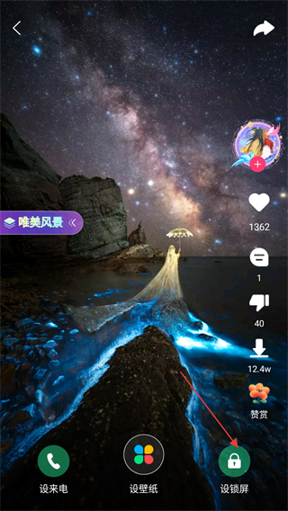 4、一鍵應(yīng)用功能:選中壁紙后無需復(fù)雜操作,支持一鍵設(shè)置為桌面,動態(tài)壁紙與來電視頻彩鈴也能快速生效,提升使用便捷性。