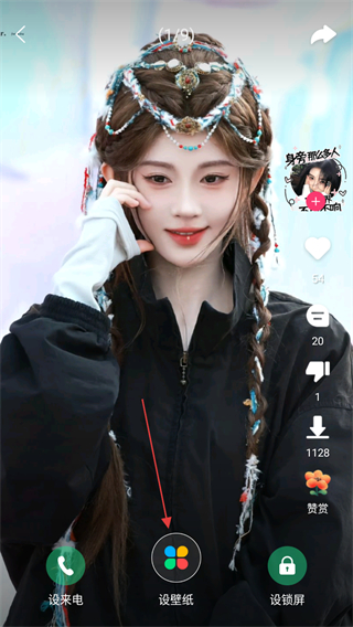 3、在圖片詳情頁面,點擊設(shè)壁紙,即可將該圖片設(shè)置為壁紙。