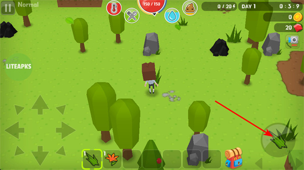2、點擊右側的草圖標,可收集草資源,草可用于制作基礎的物品,是生存的重要物資。