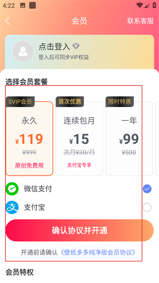 4、在會員頁面,選擇好條件后,點(diǎn)擊確認(rèn)協(xié)議并開通即可設(shè)置來電視頻。