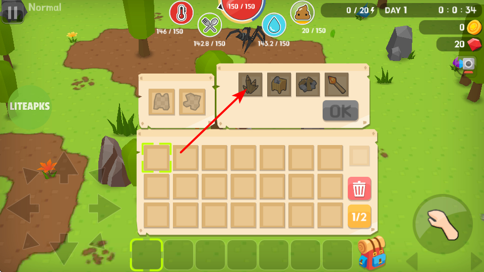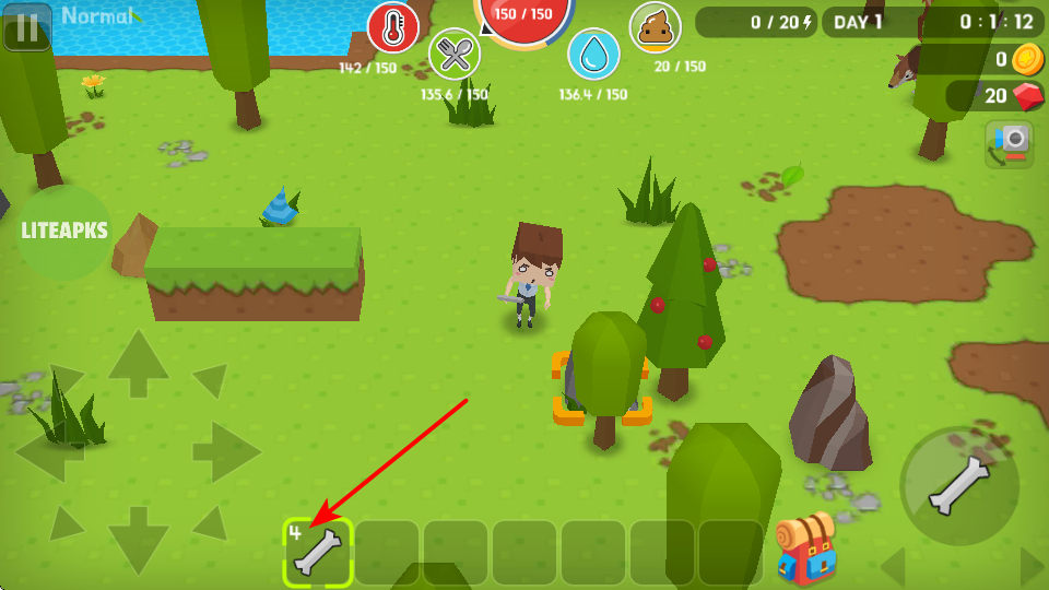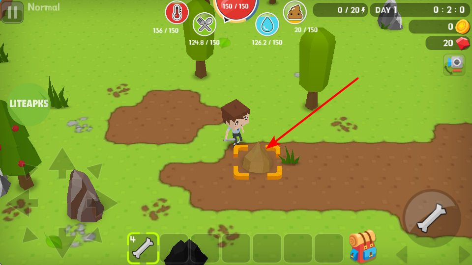3、靠近土堆區(qū)域,可進行挖掘操作,獲取土資源,土可用于建筑或制作物品,是生存基礎資源。