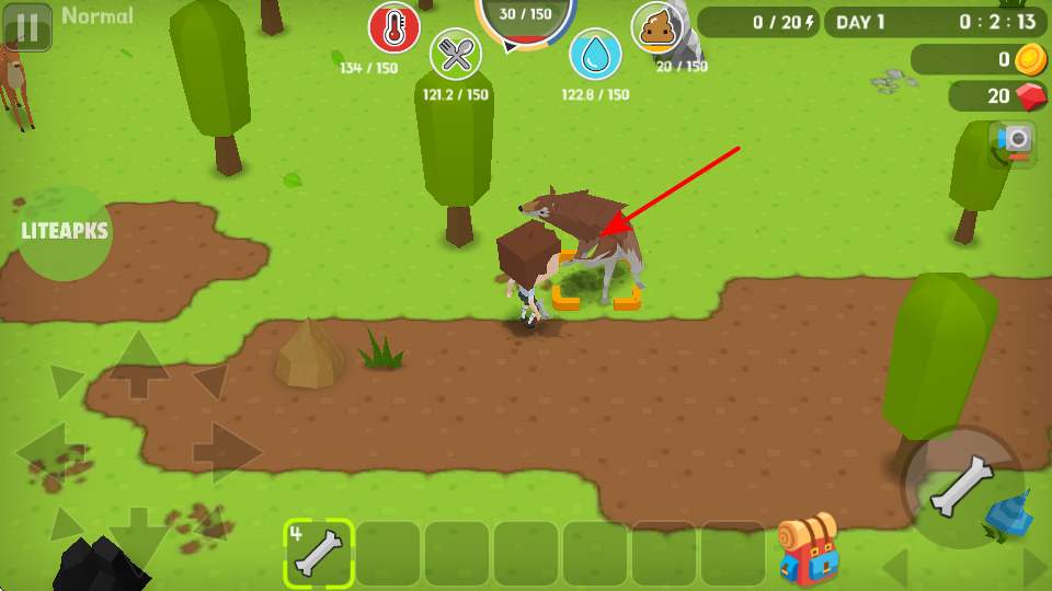 2、點擊下方的骨頭道具,可裝備該道具,用于相關的戰(zhàn)斗或與出現(xiàn)的動物互動,拓展游戲玩法。