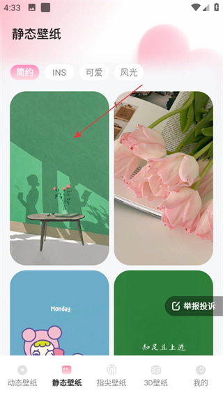 2、在靜態(tài)壁紙頁面,選擇喜歡的壁紙,進入壁紙詳情頁面。