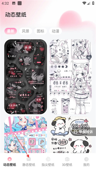 1、點擊頁面底部的靜態(tài)壁紙,進入靜態(tài)壁紙頁面。