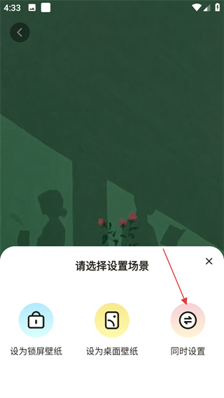 4、在設(shè)置場景選擇框中,選擇同時設(shè)置即可同時設(shè)置為桌面鎖屏壁紙。