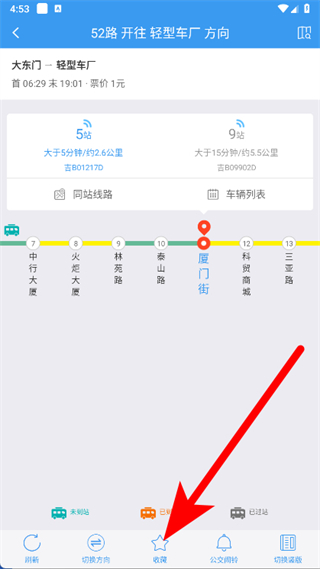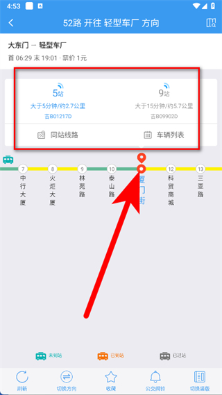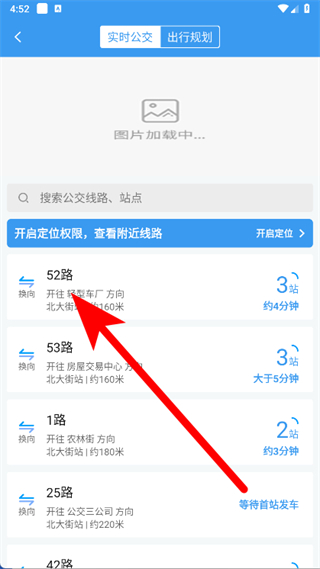3、進(jìn)入52路公交詳情頁(yè),可查看車輛的實(shí)時(shí)位置和站點(diǎn)信息。