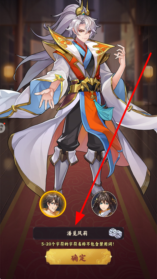 1、角色創(chuàng)建,輸入符合要求的角色名稱,確認后進入作品,開啟冒險之旅,為后續(xù)招募武將、參與戰(zhàn)斗做好準備。