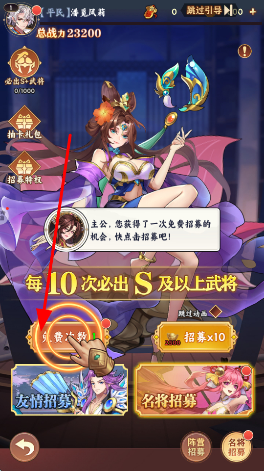 2、招募利用免費次數(shù)進行招募,也能選擇其他招募方式,招募到不同的武將,充實自身的武將陣容。