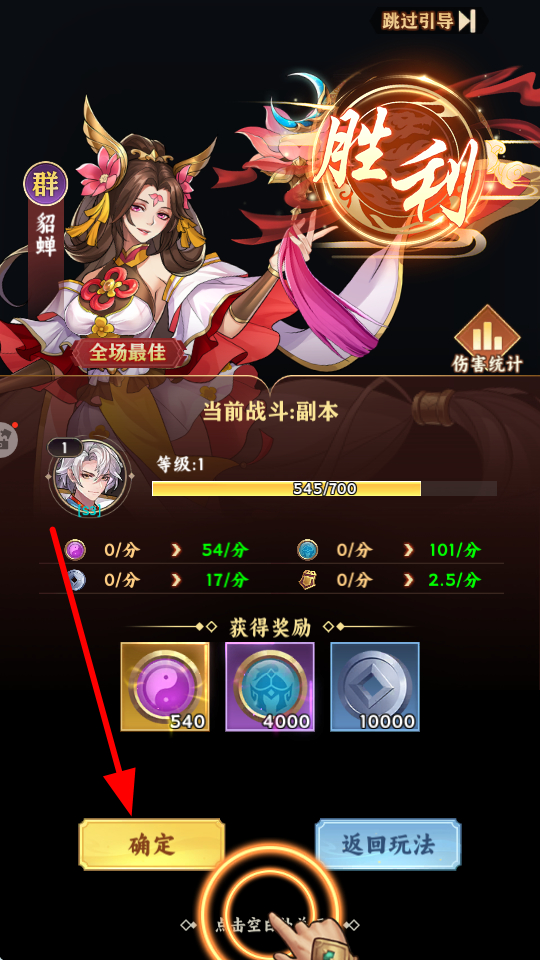 4、戰(zhàn)斗勝利后,會獲得相應(yīng)的獎勵,點擊確定領(lǐng)取獎勵,這些獎勵可用于提升角色或武將的能力,助力后續(xù)的冒險與戰(zhàn)斗。