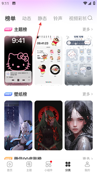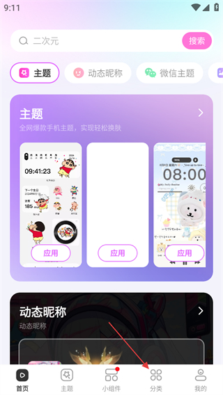 1、點(diǎn)擊主題秀秀首頁(yè)底部的分類,進(jìn)入分類頁(yè)面。