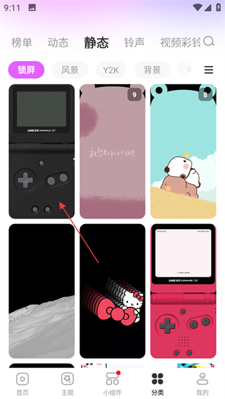 3、在靜態(tài)內(nèi)容頁(yè)面,選擇喜歡的鎖屏壁紙,進(jìn)入壁紙?jiān)斍轫?yè)面。