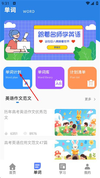 2、隨后在單詞頁(yè)面,點(diǎn)擊單詞計(jì)劃,進(jìn)入學(xué)習(xí)計(jì)劃頁(yè)面。