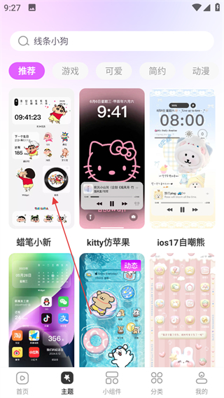 1、點擊主題秀秀首頁底部的主題,進(jìn)入主題頁面。