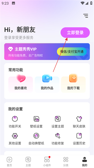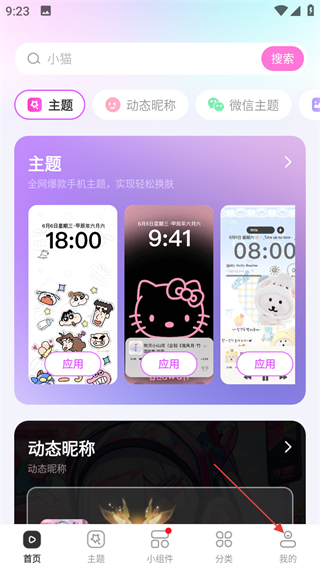 1、點擊主題秀秀首頁底部的我的,進入個人中心頁面。