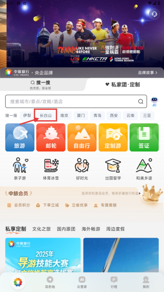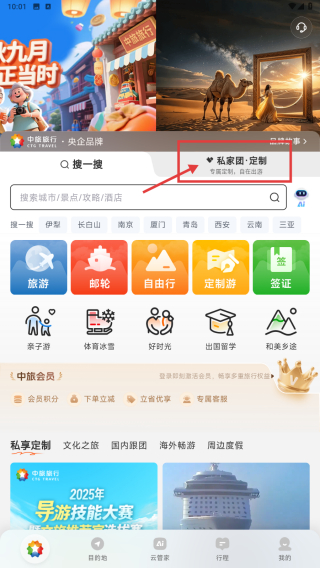 1、打開旅游服務類應用,點擊私家團·定制分類,進入定制游頁面。