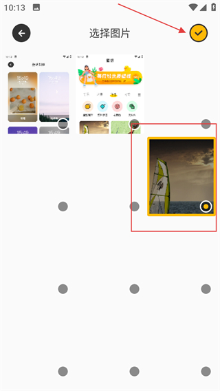 3、在選擇圖片頁面,選擇要制作的圖片,點擊右上角確認(rèn)圖標(biāo)。