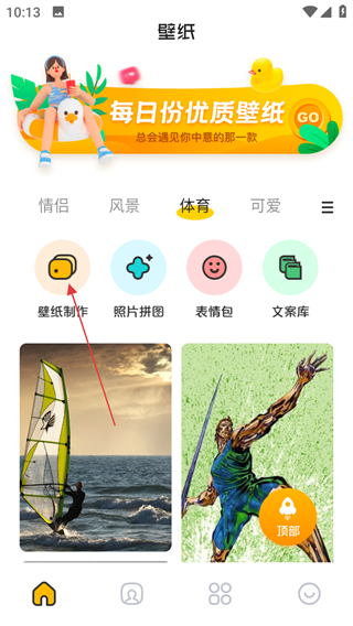 1、在壁紙頁面,點擊壁紙制作,進(jìn)入壁紙制作頁面。