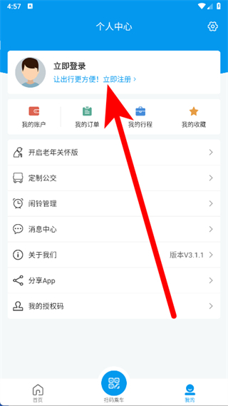 2、在個人中心頁面,點擊立即注冊。